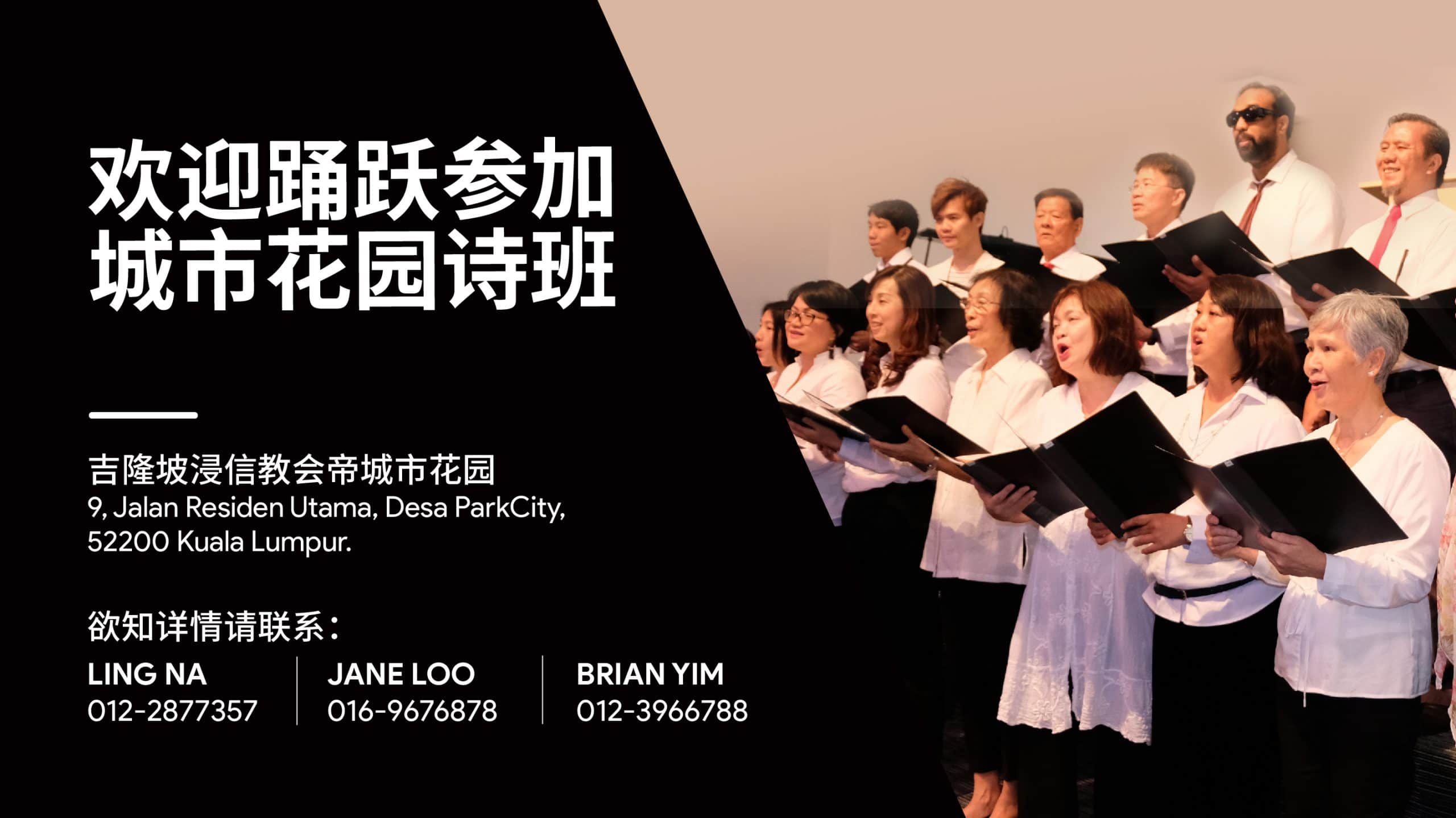 我们逢星期日下午12点30分,英语崇拜散会后进行练唱排练。若您愿意参与此诗班,请联系: