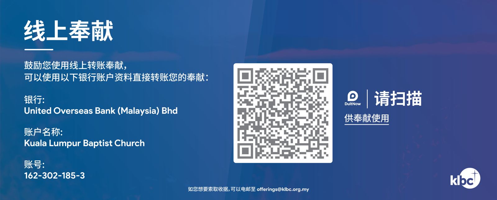 - 电邮附件给教会:offerings@klbc.org.my